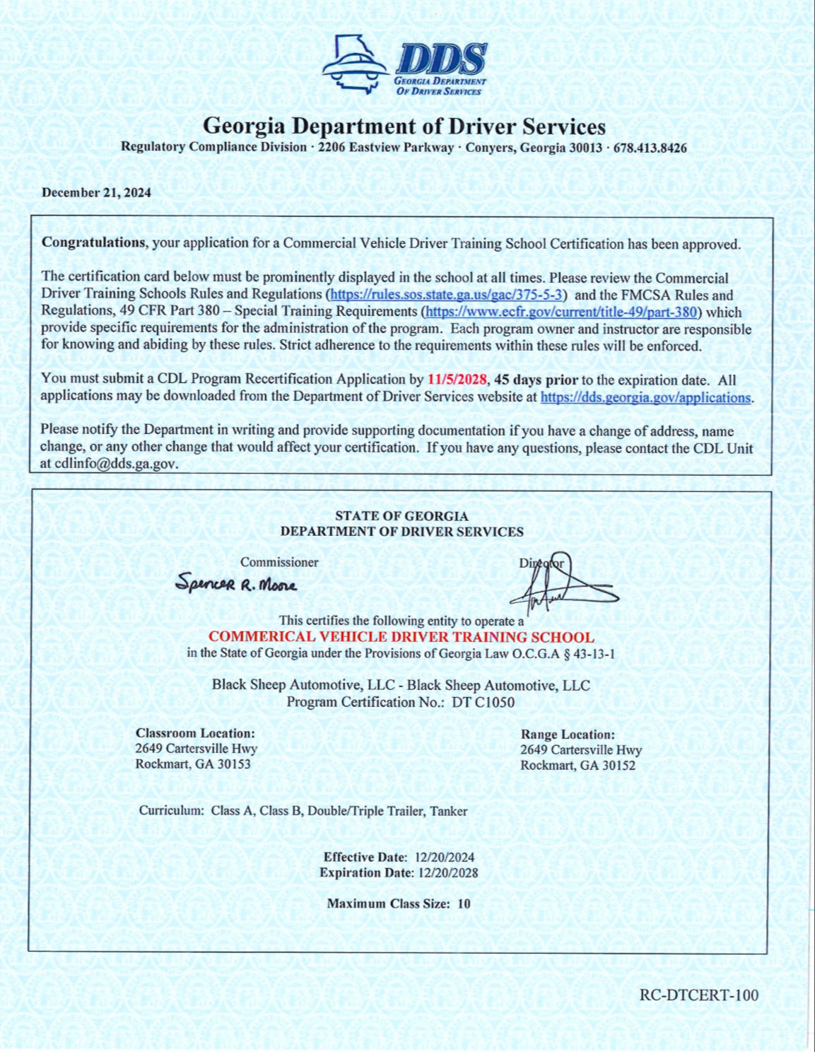 Top-Quality CDL Training & Employment Support at Black Sheep Automotive CALL NOW 404-979-1232